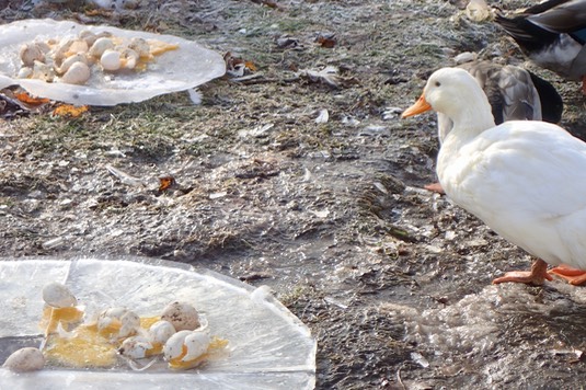 The ducks aren’t too keen on this morning’s special: Scrambled Eggs on Ice!