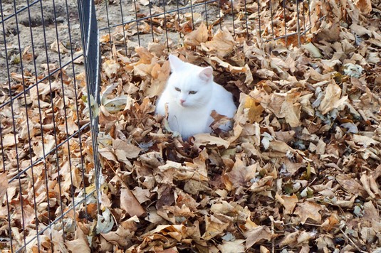 Kitty blends into the leaves, snoozing away in yesterday afternoon’s sun: