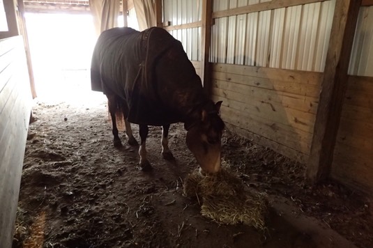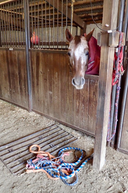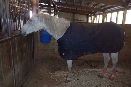Stormy is still in his stall. Tomorrow Mary will change his ankle bandages: