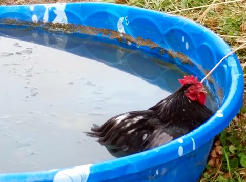 Mr. Peepers goes swimming 🐓