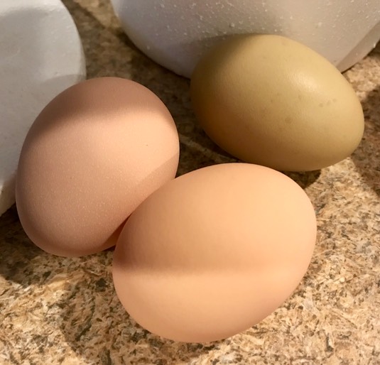 It’s been another gloomy day, just like the rest of this week. We can try to “brighten up,” I suppose, by admiring this morning’s colorful eggs: