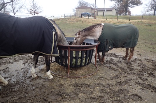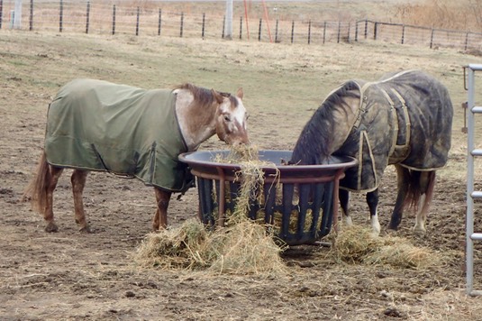 Finally, Iris and Rose, make sure you don’t pull any hay out on the ground (like you usually do):