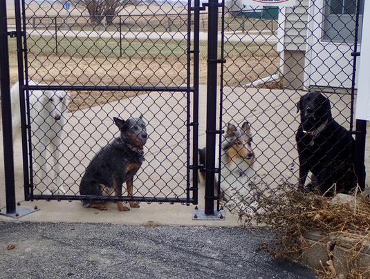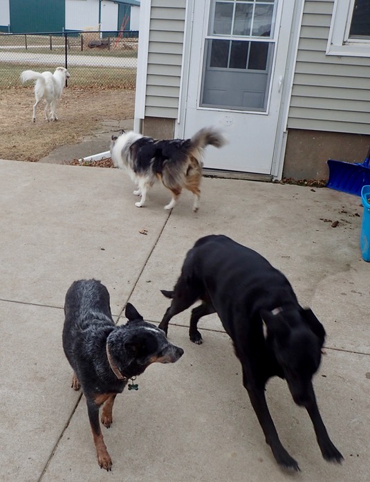 All dogs are present and accounted-for: Sophie, Nixie, Calla and Dukie!