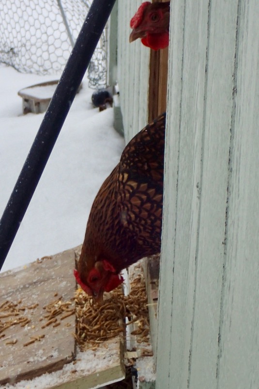 Although it’s warmer, the chickens still aren't coming out, not even for mealworms: