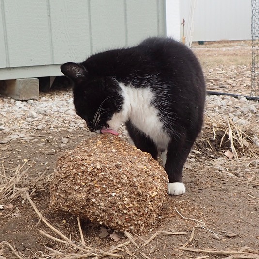 Schroeder, why are you licking the chickens’ feed block?
