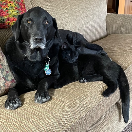 Dukie’s here! She and Greg are snuggling and watching TV: