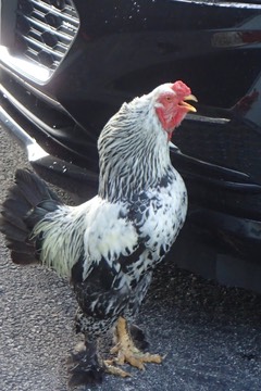 Baldy is calling to his friend in the car bumper: