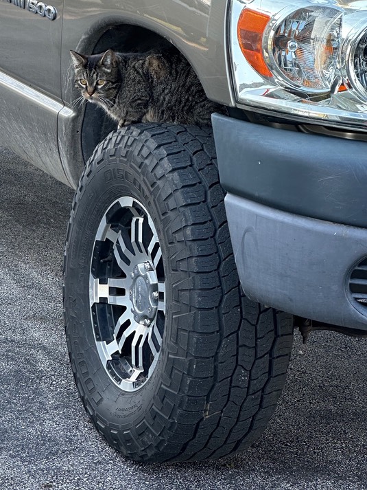 And his morning, just LOOK at where Onslow has decided to sit on our friend Jake’s truck: