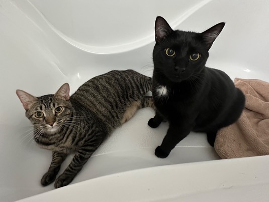 Tiger and Tyrus are having fun in the tub: