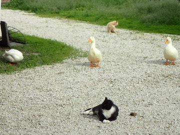 Ferdinand, Percy and Daisy have the yard to themselves: