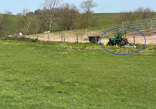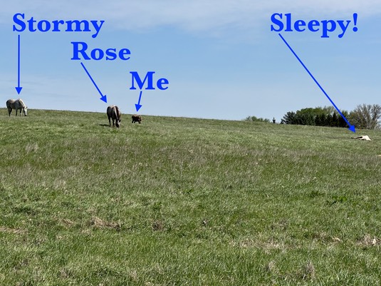 We’re heading out to the far pasture, as Ann is mowing some weeds in the front: