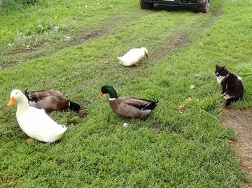 Tux checks out the ducklings (they’re not really ducklings anymore, but that’s all we can think to call them):