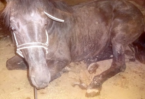 Our poor Charlie was feeling sick Friday evening. She wouldn’t eat her food and laid down in her stall.