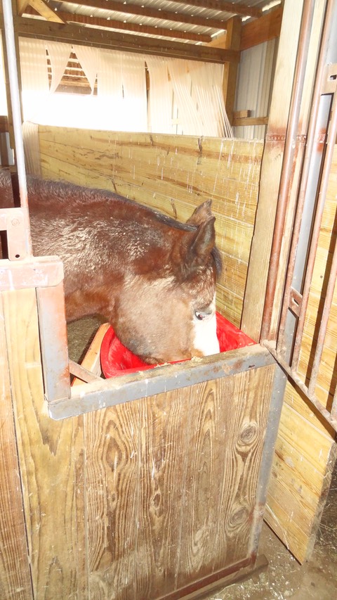 Here is Chezzie enjoying his new, custom-crafted feeder: