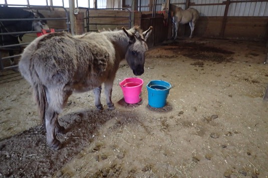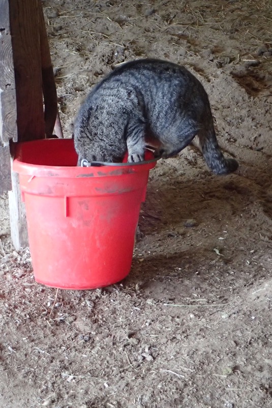 I’m moody this morning and won’t eat out of my dish. Here I am stealing bites out of the bucket: