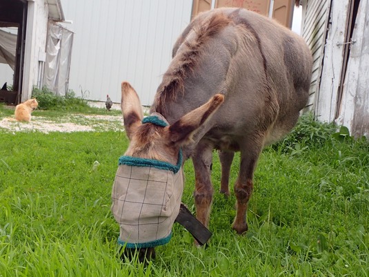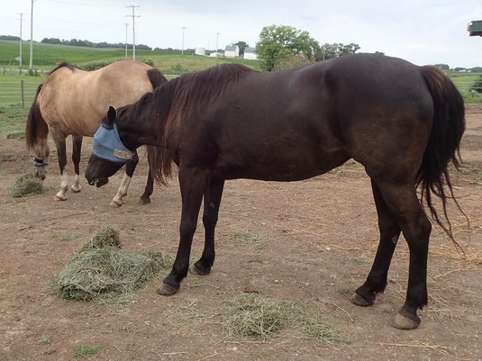 We could go out to the far pasture for some fresh grass—but the heat has been keeping us hanging around the stable for shade. 🐎