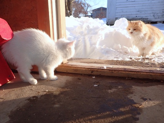 Kanna says, “Don’t come out in the snow, Betty. No one will be able to see you!” 😺