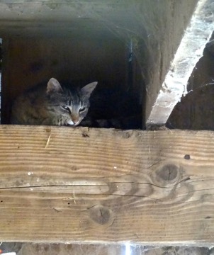 Zelda hides up in the floor joists under the barn. It’s a great place to watch swallows.