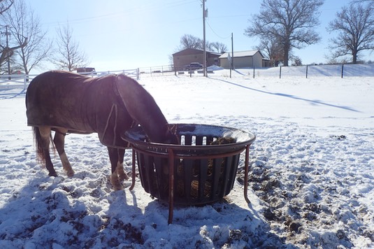 The sun is out this morning and it’s blinding us! Buttons says, “I’m heading back to the hay barn. This snow is just too hard on my eyes.”
