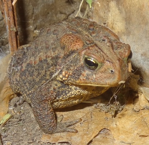 This morning we found Schrödinger gently paw-probing Mr. Toad in the corner of the garage: