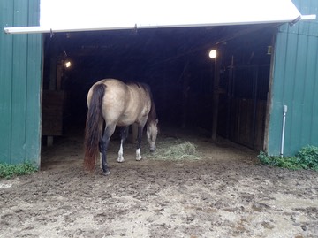 We’re having hay in the stable again. It’s drizzling this morning.