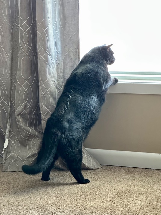 “Smudge says, ‘Everybody’s telling me I have a heart-shaped patch above my tail. I wish I could get a good look at it.’”