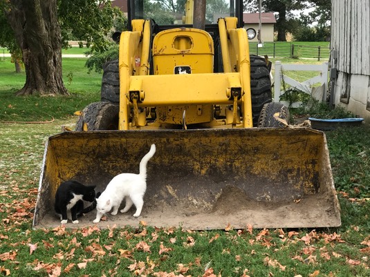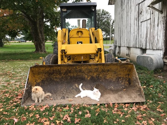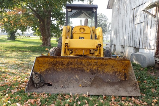 Our friend Mr. Buster, his bulldozer broke down, so it’s parked in our driveway while he fixes it: