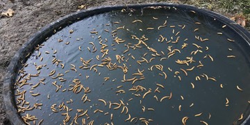 The ducks don’t know how to get to their mealworms, until Patrick breaks the ice (watch the movie at the end of the post):