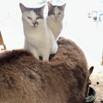 Thanks, Smudge and Dot. Stay on my back, be patient, and you’ll get a Goo-Tube. I made the cat-cops promise! 🐴