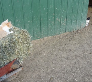"That better be my breakfast in that bucket, or I'm coming through this gate!"