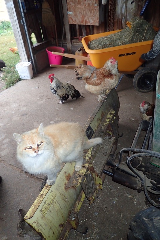 Pumpkin and the chickens would like their breakfast, too: