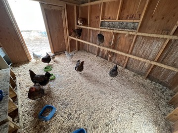 Good morning! Our friend, Jake, gave the chickens a new floor of fresh sawdust:
