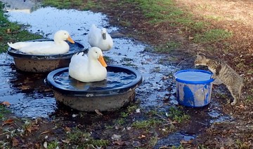 Noodle checks out the ducks:And Ukie gets a little too close to Finn: