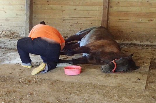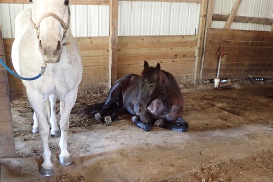 Luckily, Mary and Ann are out this morning. Here’s Mary, picking out debris from her hooves: