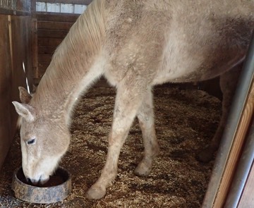 He’s getting medicine too, in his water bucket. 🐴