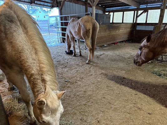 She’s feeling better this morning, but, like the rest of us, isn’t happy about the downpour. It makes the stable very noisy. 😾