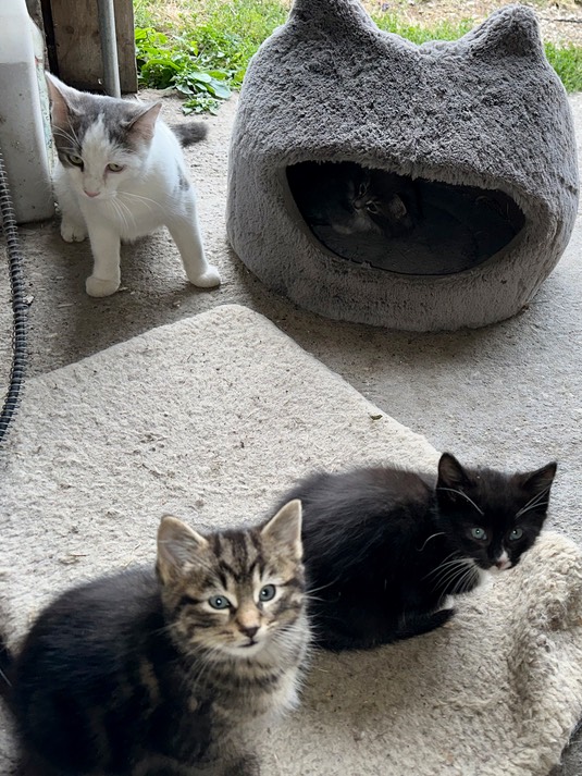 Also, the cat pad was plugged in last night. It didn’t take long for the kittens to find it: