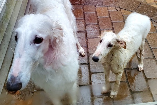 And, we had a perfect day yesterday, when Sophie and Anya were clean and dry: