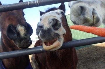 Here are Jewel, Chavez, and Stormy, having carrots: