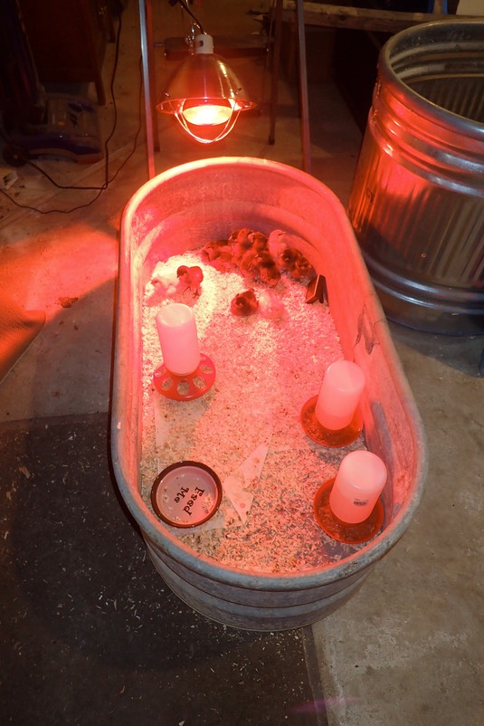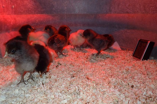 The new arrivals are, of course, the chicks. They are in the basement of the farm house: