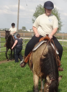 Mary rides RC bareback.