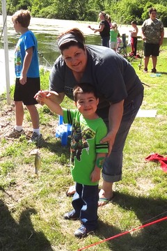 Kellen had a big day today at the Outdoor Adventure Fishing Contest. Here he is with his Mommy (who is a pretty good caster herself)!
