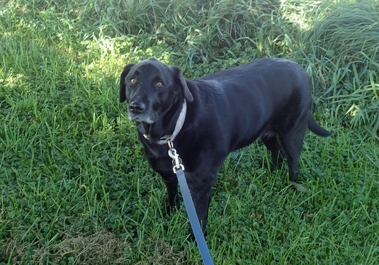 Our Dukie says, “Good morning! I’m looking for a place to potty, in this nice cool grass.”