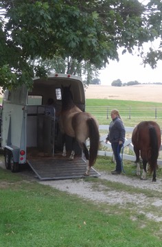Mary and Mara packed up Iris and Chavez for a horse show this morning: