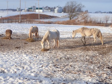 The snow was glazed with ice, and the driveway was icy, too. But by the time we were fed, it was 34℉. 🐎