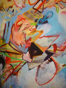As soon as I got back from Austria, I heard that one of the aggressive drakes sent one of our brown hens to chicken heaven. I should have known something was afoot: this modern art on the wall of my hotel in Graz contained a disturbing omen. See it?