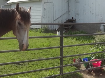 Horses and birds peacefully coexist. Cats and birds, not so much.