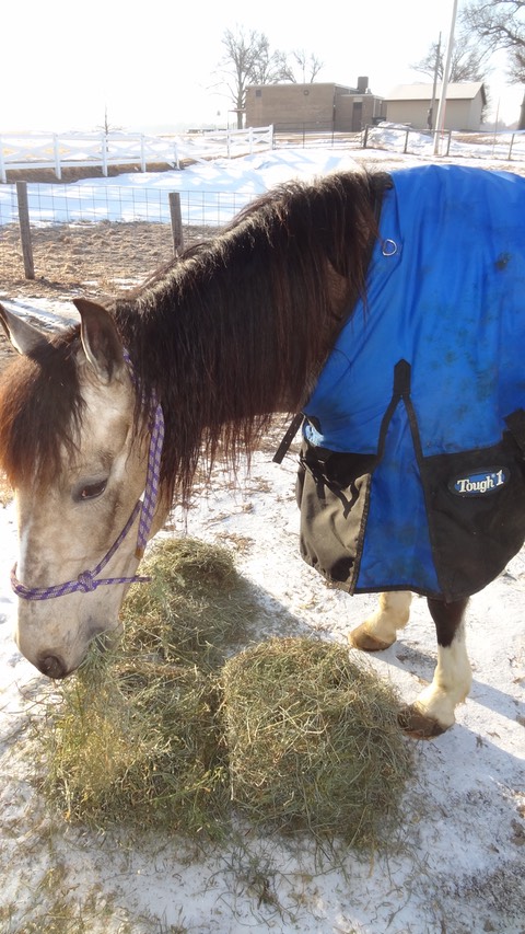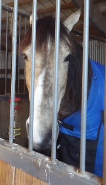 Iris returned to the bosom of the herd last night (Saturday). Here she is after spending the night in RC’s stall: