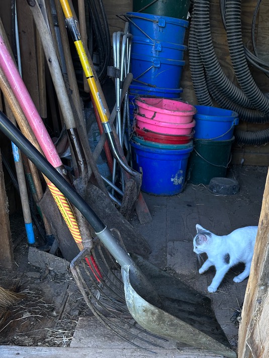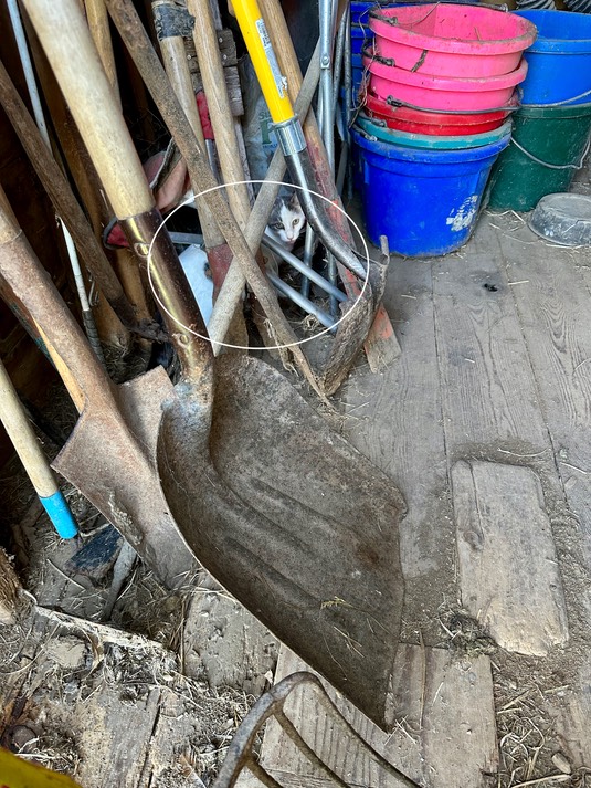 I see. Dot is exploring the shovel shed: