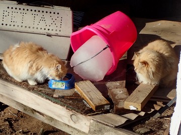 Kanna is having breakfast outside, and Pumpkin is waiting her turn: